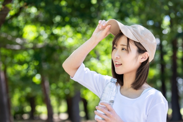 歩く前にコップ1杯の水を飲み、歩いている最中もこまめに水分補給を。普段は水でよいですが、大量に汗をかいたときには経口補水液(水に塩分などの電解質と糖質をバランス良く配合した飲み物)を飲むとよいでしょう。